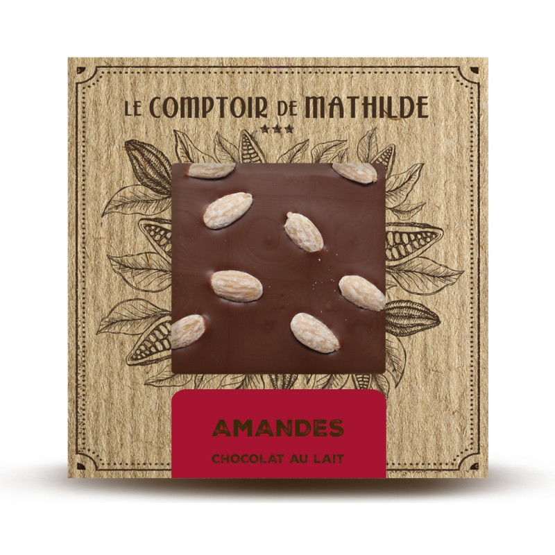 Chocolat au LAIT 92,5% (sucre, beurre de cacao 24%, poudre de LAIT entier 22,5%, p?te de cacao 11%, ?mulsifiant : l?cithine de SOJA, ar?me naturel de vanille. Cacao : 33% min.), AMANDES caram?lis?es 7,5% (AMANDE, sucre, caramel (sucre, eau)).