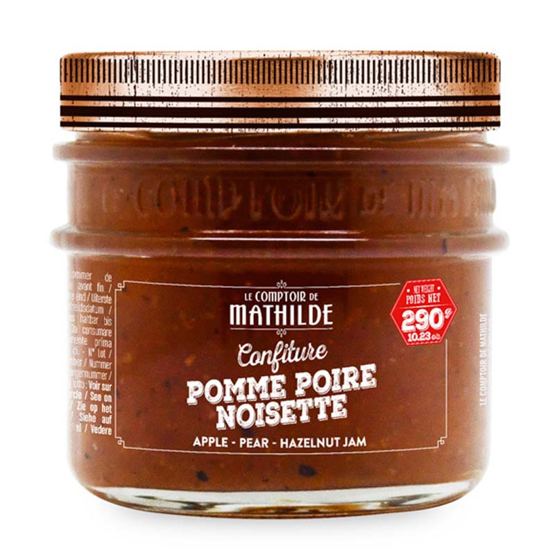 Sucre, pomme 27%, poire 27%, NOISETTE 1%, jus de citron, pectine.